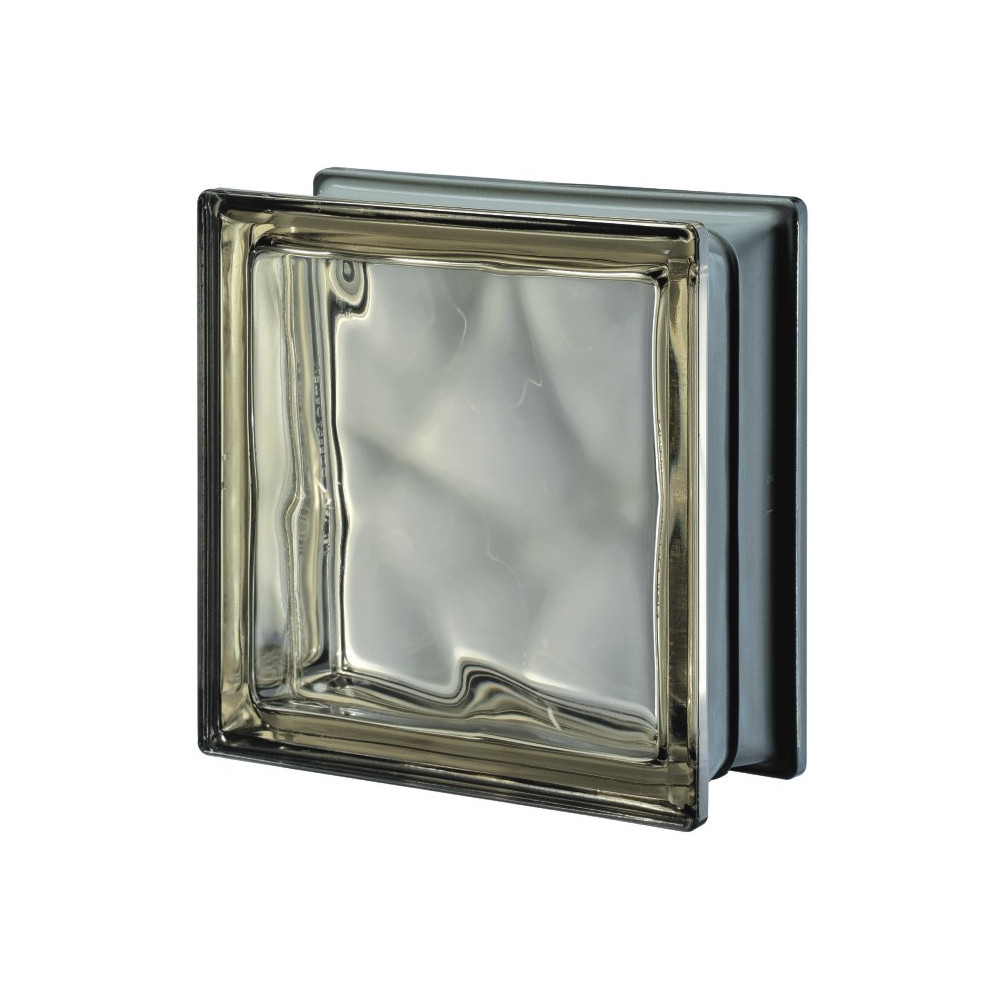 Luxfera barvená ve hmotě ( barevná sklovina ) s bočním metalickým nástřikem, který propůjčuje tvárnici kovovou patinu. Možnost spáry 2 mm, lesklý povrch - snadná údržba, vhodné např. do sprchových koutů. Dekor "vlnky" z vnitřní strany luxfery částečně deformuje obraz za stěnou. Nevhodné do exteriéru.