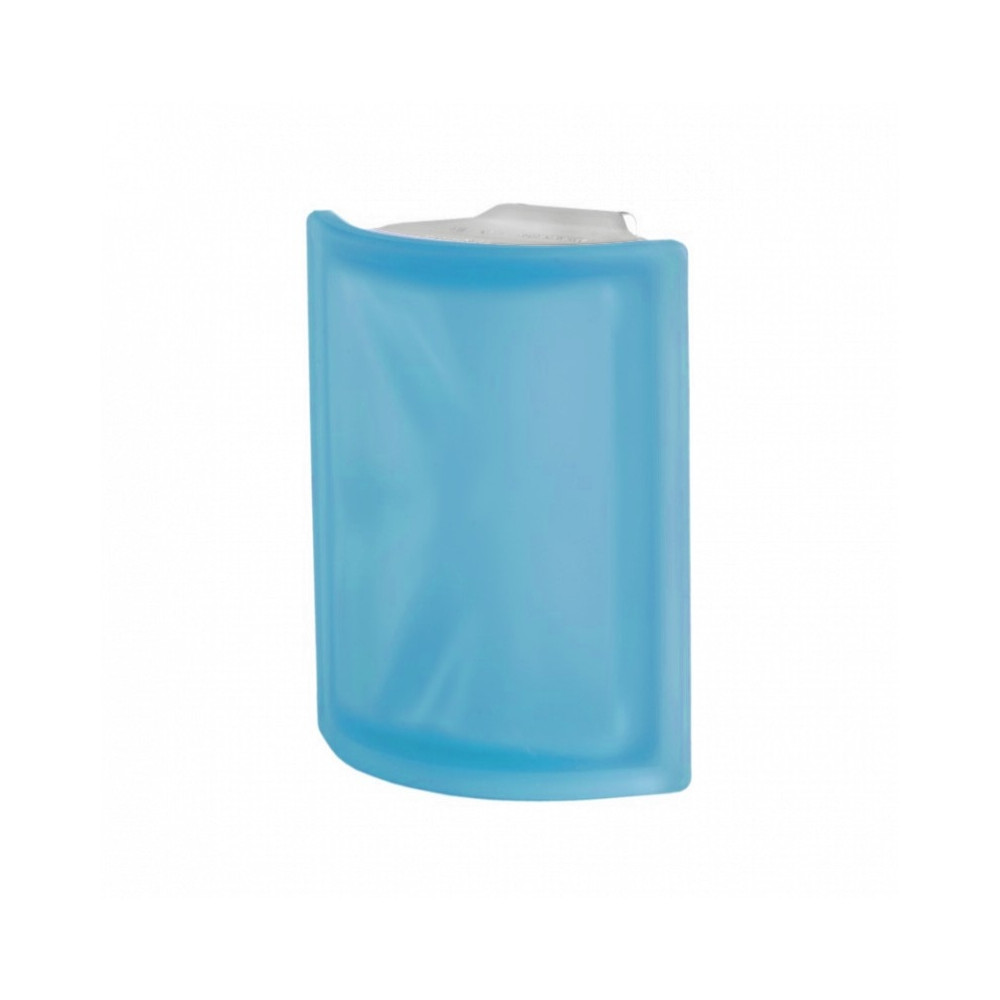 Rohová luxfera ( 90°). Barevná tvárnice s dekorem "vlnky" z vnitřní strany luxfery. Možnost realizace na minimální spáru (2mm). Oblíbený dekor. Pískovaný povrch zajišťuje soukromí, pouze propouští světlo. Možnost použití v interiéru i exteriéru.