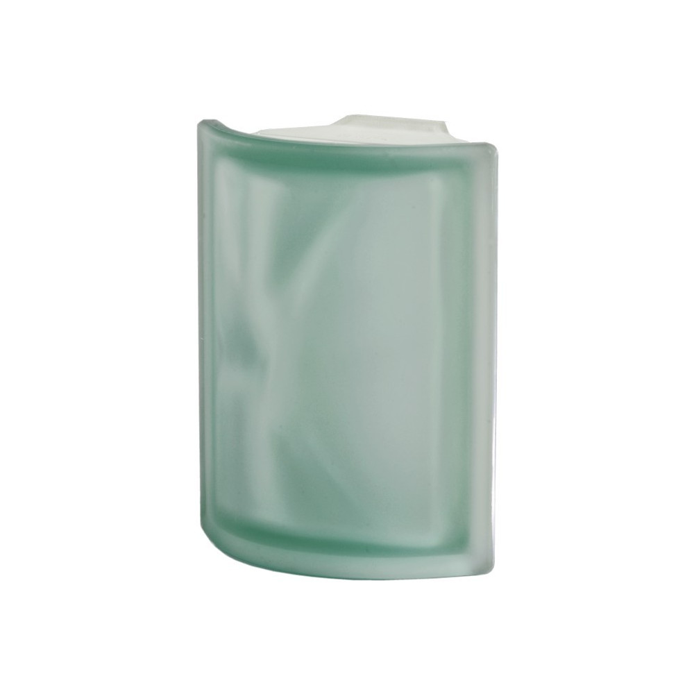 Rohová luxfera ( 90°). Barevná tvárnice s dekorem "vlnky" z vnitřní strany luxfery. Možnost realizace na minimální spáru (2mm). Oblíbený dekor. Pískovaný povrch zajišťuje soukromí, pouze propouští světlo. Možnost použití v interiéru i exteriéru.