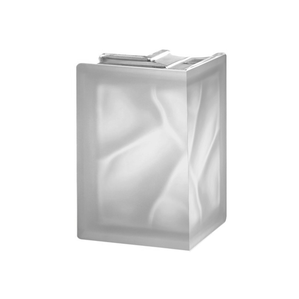 Rohová (90°) matná tvárnice s dekorem "vlnky" z vnitřní strany luxfery. Oblíbená pro zachování soukromí. Oboustranně pískovaný povrch je náročnější na údržbu, nejsou zcela vhodné pro sprchové kouty a podobná protředí.