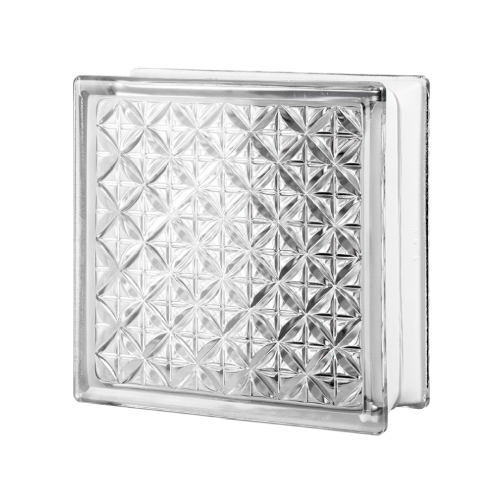 Čirá skleněná tvárnice s jemným plastickým dekorem připomínajícím broušený ornament dodává prostoru elegantní vzhled. Díky vysoké propustnosti světla krásně prosvětluje interiér, zároveň však omezuje přímou průhlednost a zajišťuje potřebné soukromí.