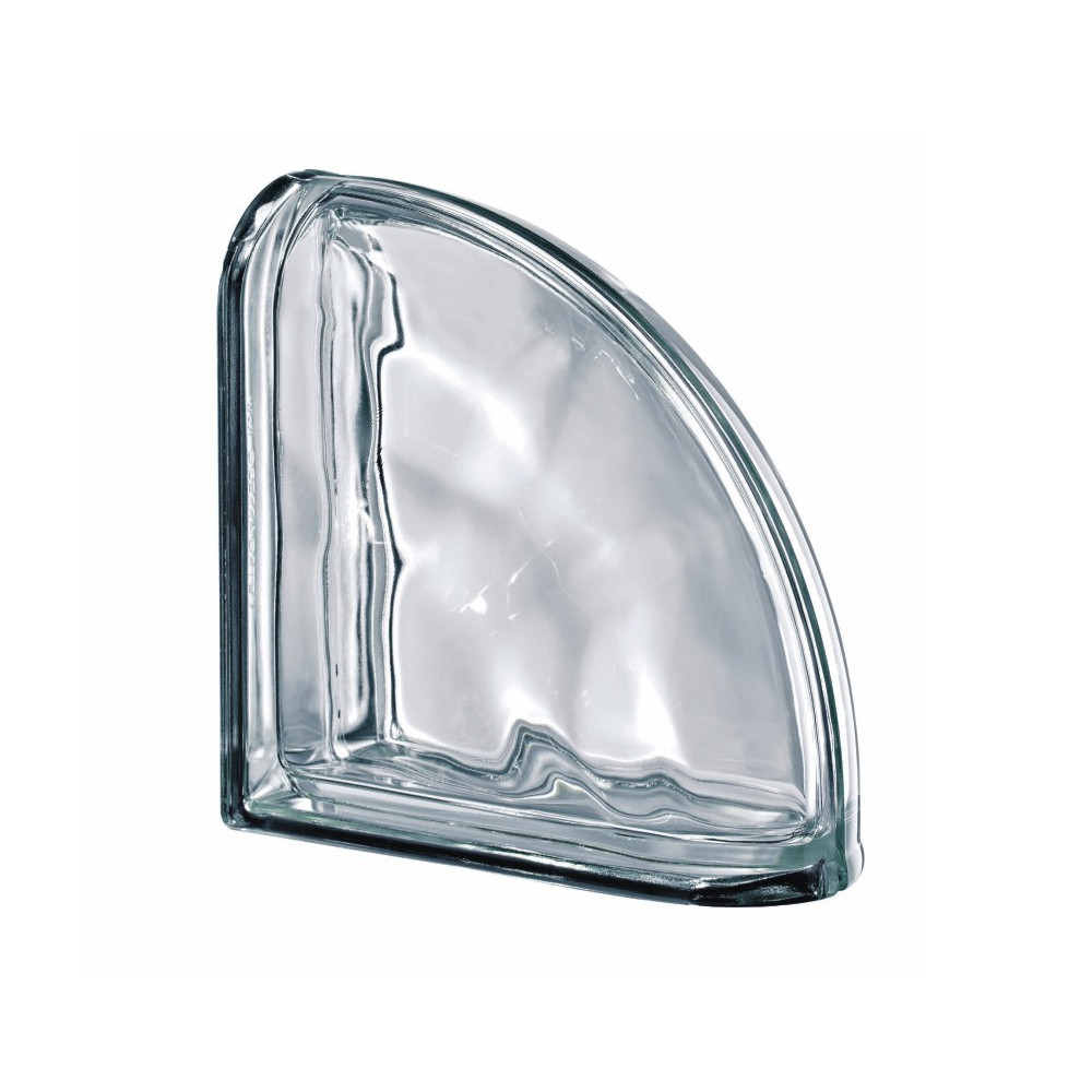 Rohová (90°) čirá hladká luxfera s dekorem "vlnky" z vnitřní strany tvárnice. Oboustranně...