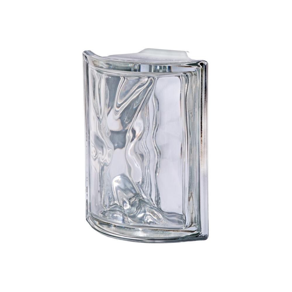 Rohová (90°) čirá hladká luxfera s dekorem "vlnky" z vnitřní strany tvárnice. Oboustranně...