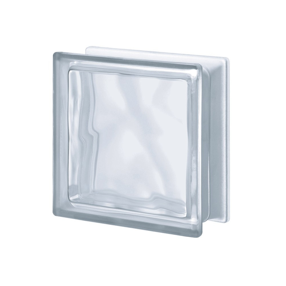 Čirá hladká luxfera s dekorem "vlnky" z vnitřní strany luxfery. Jednostranně pískovaný povrch. Možnost realizace na minimální spáru (2mm). Vhodná do interiéru i exteriéru nebo vlhkého prostředí ( sprchové kouty apod. )