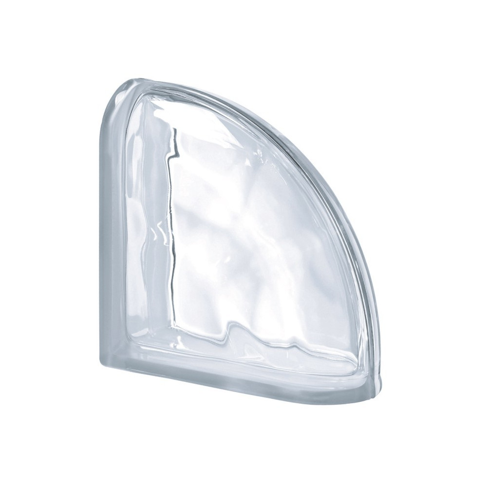 Rohová (90°) čirá hladká luxfera s dekorem "vlnky" z vnitřní strany tvárnice. Oboustranně...