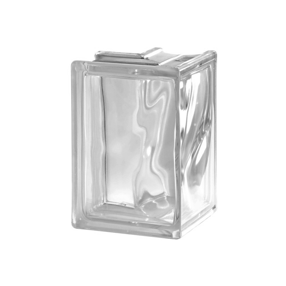 Rohová (90°) čirá lesklá tvárnice s dekorem "vlnky" z vnitřní strany luxfery. Oblíbená pro svou velkou propustnost světla, snadnou údržbu a částečného zachování soukromí. Ideální volba pro sprchové kouty a koupelny.