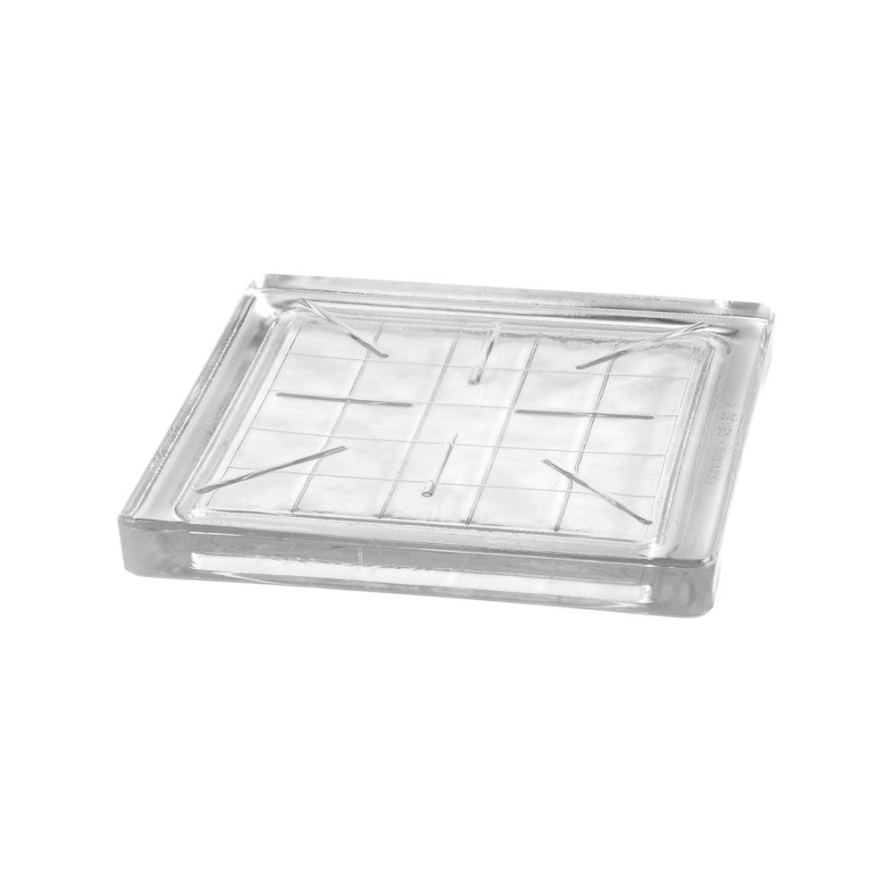 Skleněná luxfera - dlaždice speciálně vyrobená pro horizontální - vodorovné a pochozí konstrukce - stropy, lávky, chodníky, klenby apod. Lesklý povrch s dekorem "kostiček". Realizace na místě nebo formou výroby prefabrikovaných panelů.
