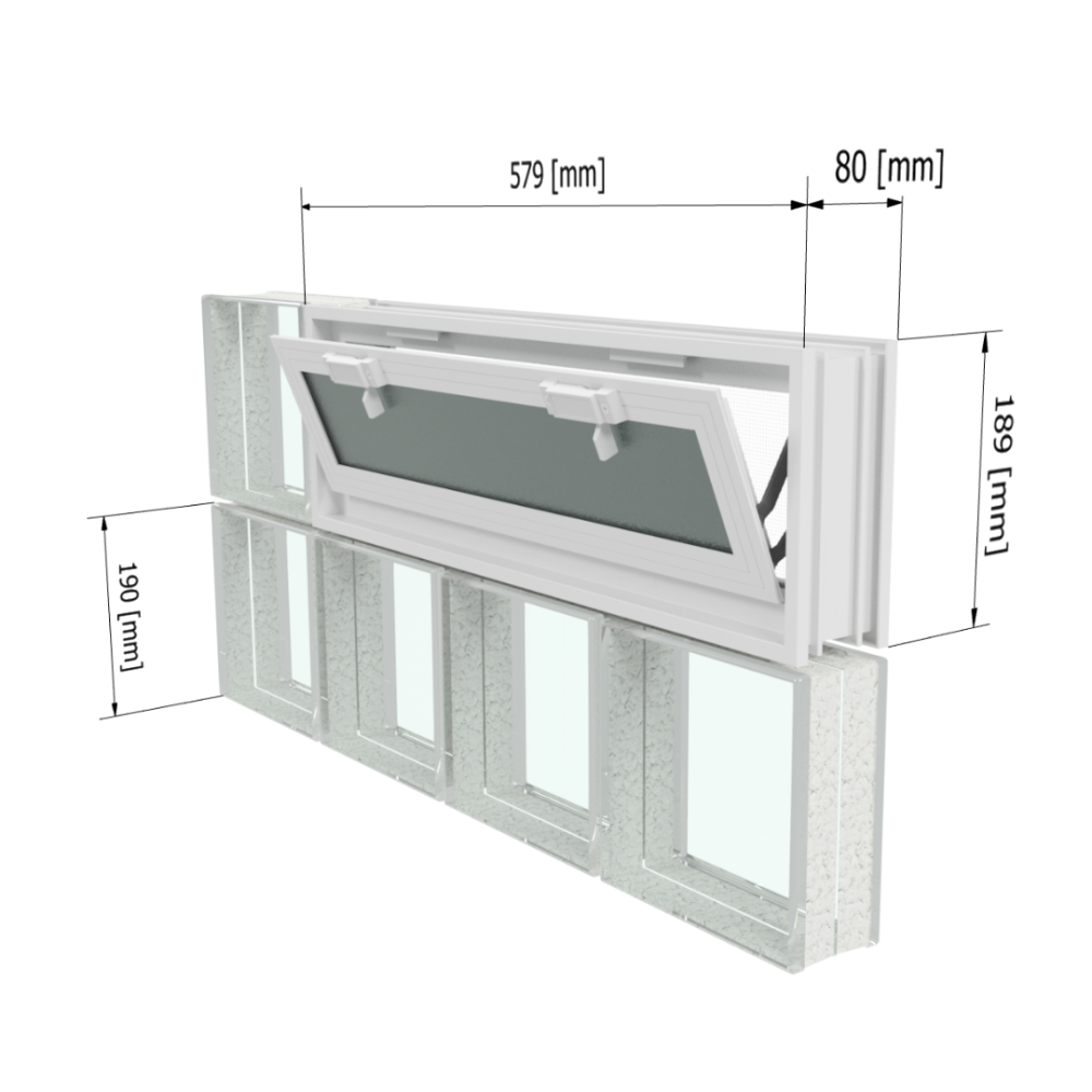 Praktické větrací okno určené pro zabudování do stěny z luxfer. Rozměrově odpovídá luxfeře 19 × 19 × 8 cm, takže nahrazuje 3 ks tvárnic a snadno se instaluje.