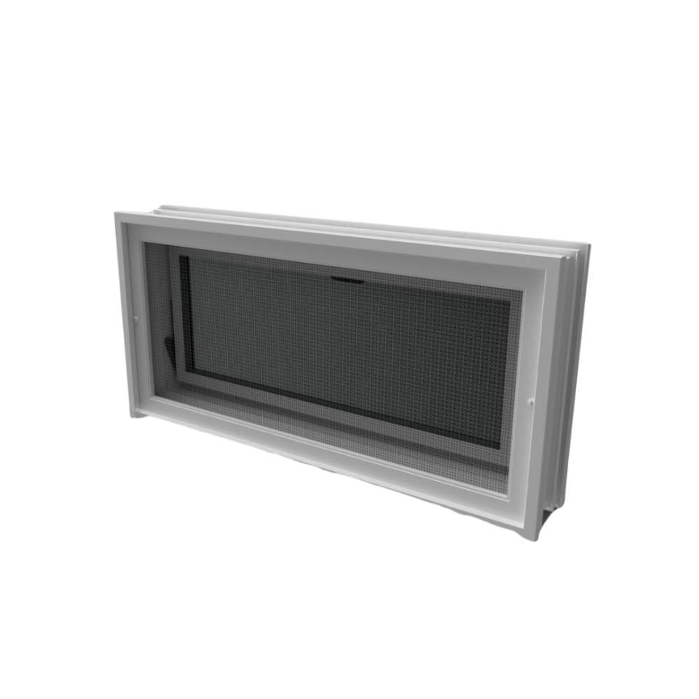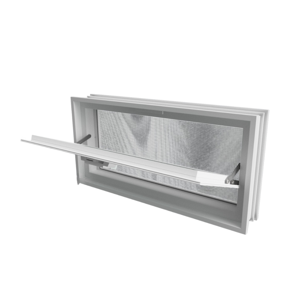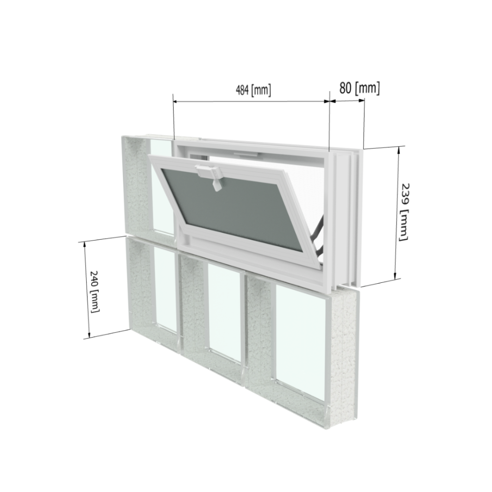 Praktické větrací okno určené pro zabudování do stěny z luxfer. Rozměrově odpovídá luxfeře 24 × 24 × 8 cm, takže nahrazuje 2 ks tvárnic a snadno se instaluje.