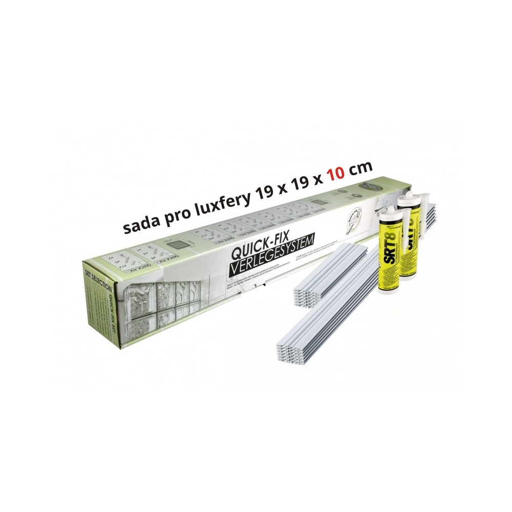Montážní sada pro 25 ks tvárnic řady Technology (19x19x10 cm !!!). Sada obsahuje plastové profily a pevnostní lepidlo pro dané množství tvárnic. Pro montáž pomocí tohoto systému nepotřebujete žádné křížky ani maltu. Vhodné pro domácí kutily nebo stavební firmy bez zkušeností s klasickou vyzdívkou luxfer.