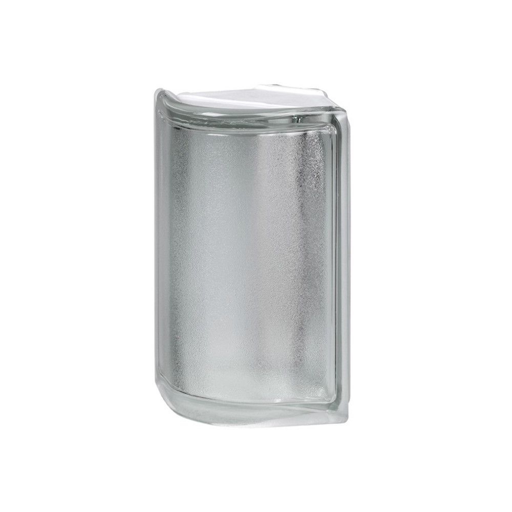 Rohová (90°) čirá lesklá tvárnice s dekorem "námrazy" z vnitřní strany luxfery. Oblíbená pro svou velkou propustnost světla, snadnou údržbu a zachování soukromí. Ideální volba pro sprchové kouty a koupelny. Nově v sortimentu!