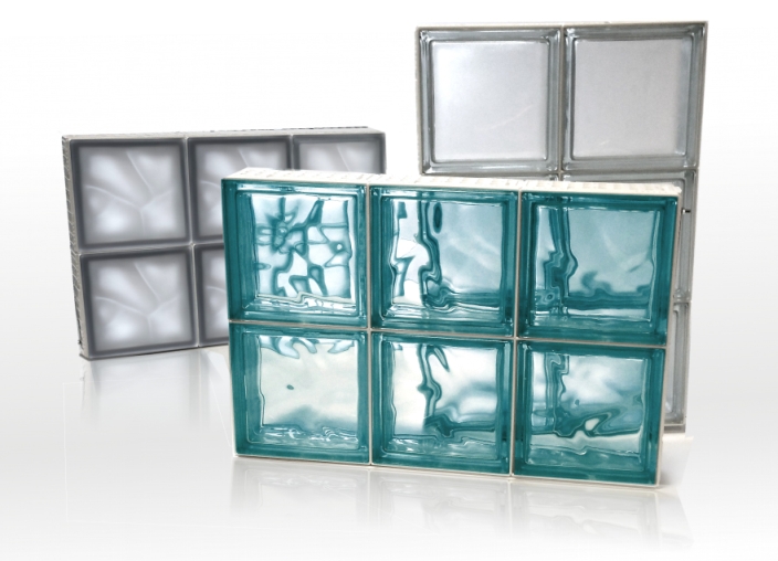 V panelu byla použita luxfera: 1919/8 ARCTIC 19x19x8 cm, lesklý povrch, bezbarvá sklovina, dekor připomínající námrazu je z vnitřní strany luxfery (zvenčí má tvárnice hladký a dobře udržovatelný povrch)