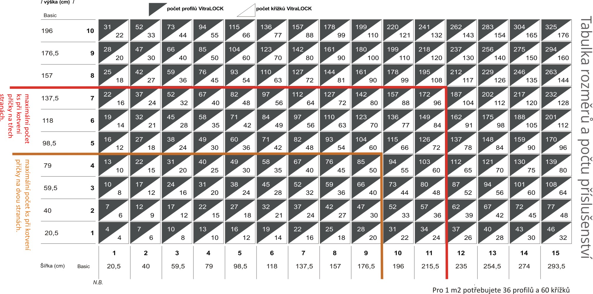 maximální velikosti stěn montované pomocí VITRALOCK sady: